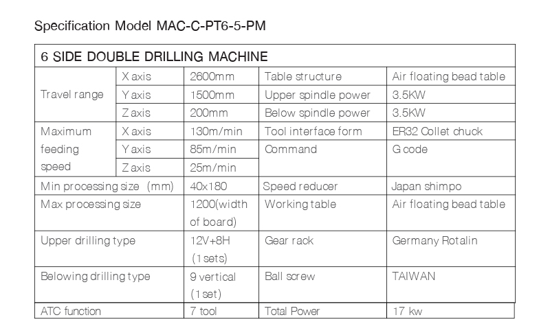 PMSK Six Side Drill Machine MAC-C-PT6-5-PM