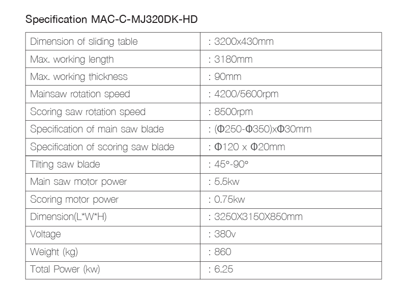 Slide Table Saw MAC-C-MJ320DK-HD